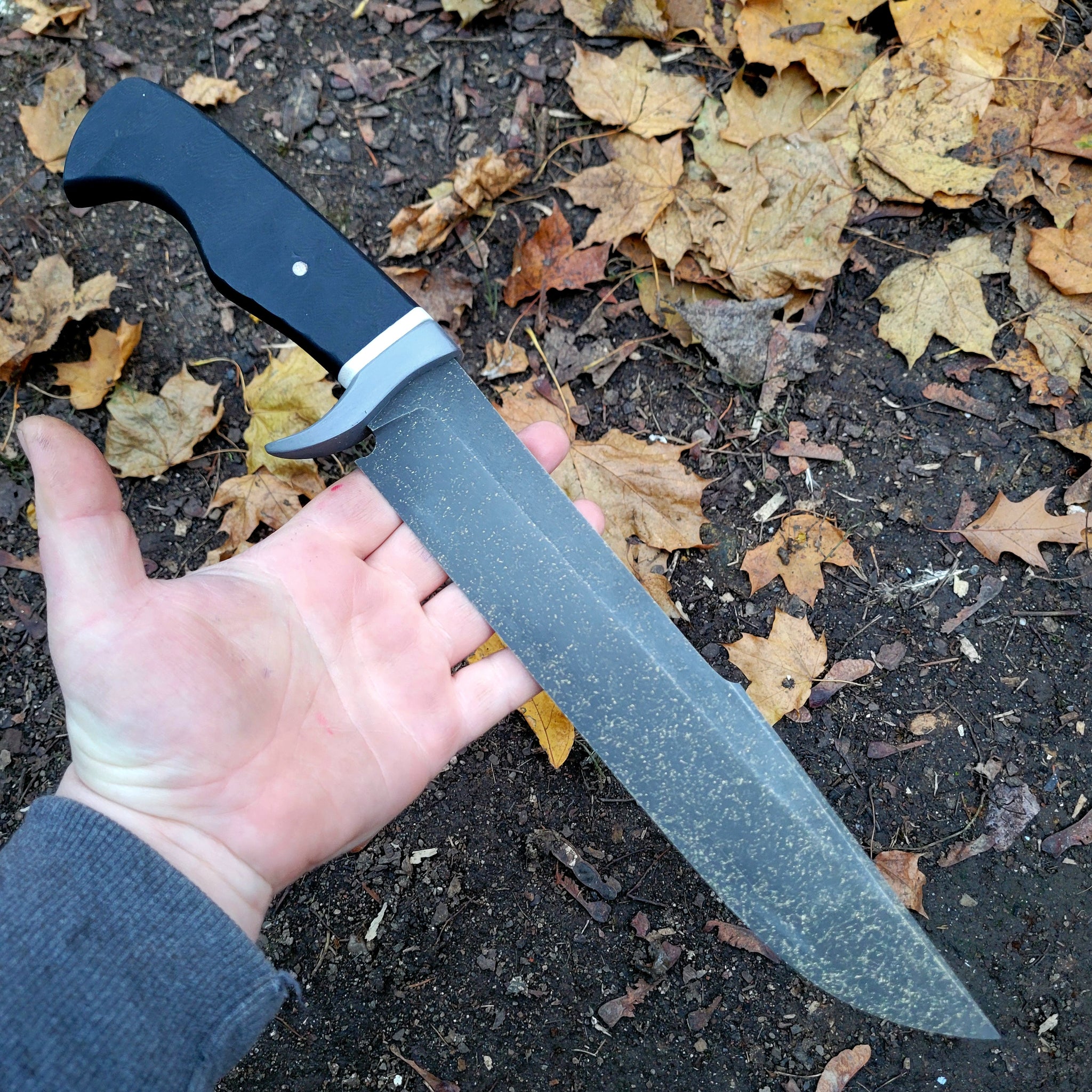 Chopper Bowie Knife - Handmade in CPM Cru Wear with G10 Handle - Stonewashed Finish