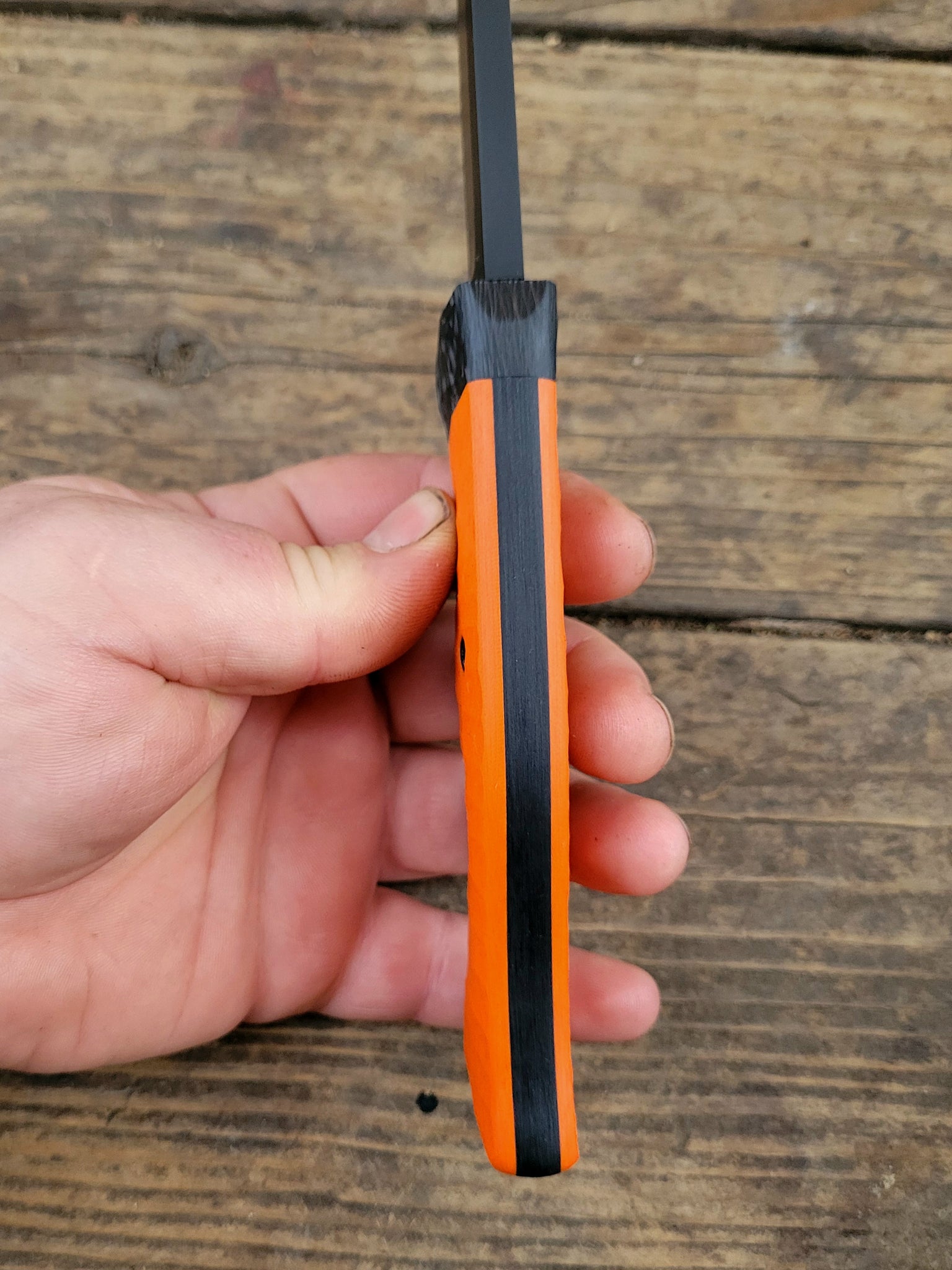 Hidden Tang Hunting Knife - Handmade in CPM Magnacut with Hunters Orange G1 Handle, Cerakote finish